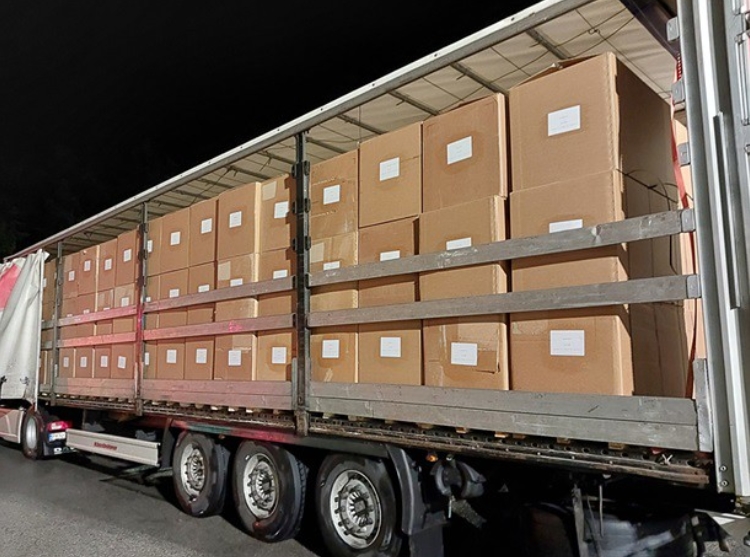 Lors du contrôle du chargement, les agents des douanes découvrent de très nombreux cartons.