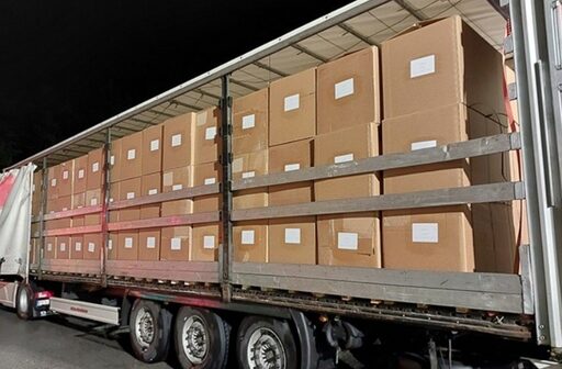 Lors du contrôle du chargement, les agents des douanes découvrent de très nombreux cartons.