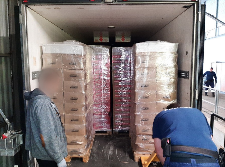 L’examen complet de chargement a permis la découverte de 22 palettes de cigarettes de contrebande, pour un poids total de 7 tonnes. La valeur de la marchandise de fraude sur le marché illicite s’élève à 4 576 000 euros.