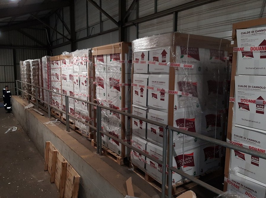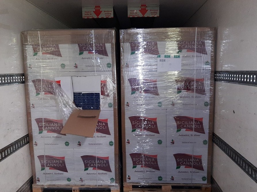 Le contrôle débute par l’intervention d’un maître de chien anti-stupéfiants assisté de son collègue de la brigade. L’examen des documents de transport indique un chargement de 19 tonnes de nouilles et de cannolis siciliens. L’expéditeur de la marchandise est basé en République tchèque.